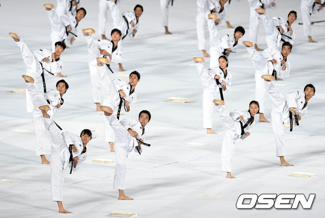 개최국 국기입장 순서에는 이번 대회 메달 리스트들인 임창우(22, 축구), 이대훈(22, 태권도), 여호수아(27, 육상), 조호성(40, 사이클), 손연재(20, 리듬체조), 이나영(28, 볼링), 이특영(25, 양궁), 김민지(25, 사격) 등 8명이 대형 태극기를 들고 입장해 경기장을 찾은 팬들의 박수갈채를 받았다. 임창우는 남자 축구 북한과 결승서 천금 결승골을 터트리며 대표팀에 28년 만에 금메달을 안긴 주인공이다. 손연재는 한국 리듬체조 사상 처음으로 개인종합 금메달을 거머쥐었다. 단체전서 은메달도 추가했다. 이대훈(남자 2연패), 여호수아(남자 1600m 릴레이 은메달, 200m 동메달), 조호성(남자 옴니엄 은메달), 이나영(4관왕, 은 1, 동 1개 추가), 이특영(리커브 여자 단체전 금메달), 김민지(여자 스키트 개인전 금메달, 단체전 은메달) 등도 대형 태극기를 들고 입장하며 열띤 호응을 이끌어냈다. 이어진 45개국 선수단이 입장할 땐 개막식과 마찬가지로 축제의 무대였다.