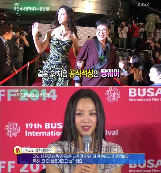중국 배우 탕웨이가 남편 김태용과의 달콤한 부부관계를 과시했다.