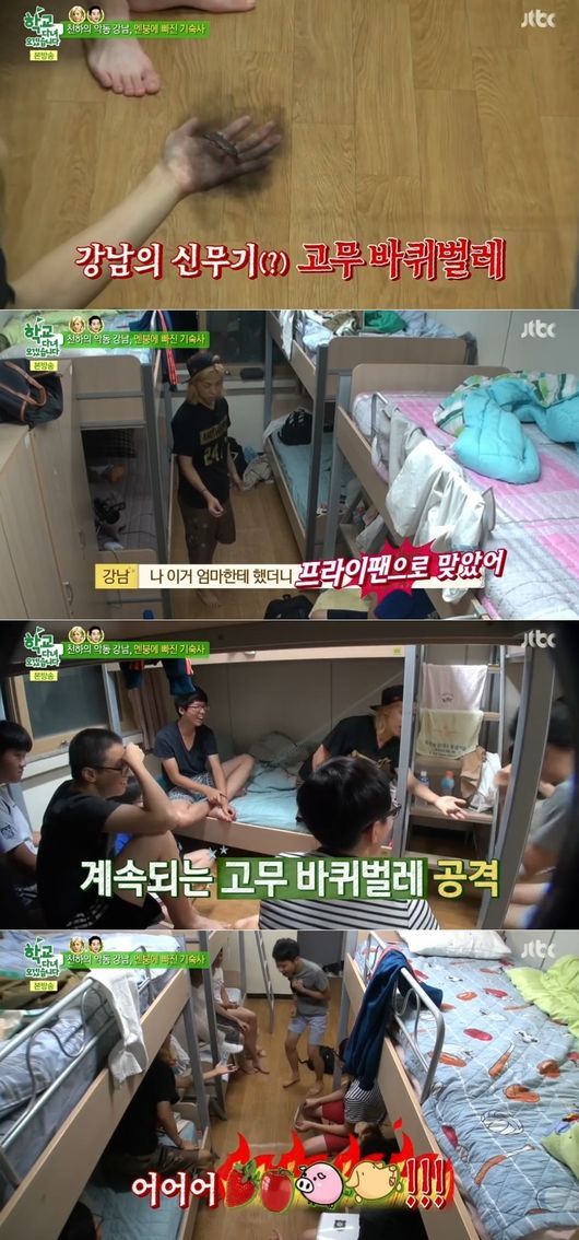강남이 침대 밑에서 바퀴벌레 모양 장난감을 꺼내자 학생들은 혼비백산하며 도망갔다. 강남은 “전에 엄마한테 했다가 프라이팬으로 맞았다”고 말해 웃음을 자아내기도 했다.