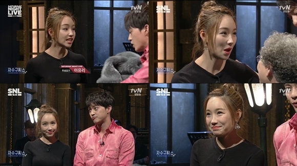 이날 '자수구찌쇼'에는 김지훈과 MBC 주말드라마 '왔다 장보리'에 함께 출연 중인 이유리가 특별출연했다. 이유리가 등장하자 강아지 탈을 쓰고 있었던 유세윤은 달려 들어서 "연민정"을 외쳤다.