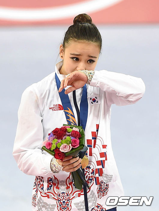 시상식 가장 높은 곳에서 애국가를 듣던 손연재는 끝내 눈물을 보였다. 경기 후 취재진과 인터뷰에 응할 때도 손연재는 벅찬 감정을 진정시키지 못했다. 손연재는 “시상식에서 아무렇지도 않다고 생각했는데 태극기가 올라가고 애국가가 나오니까 나름 열심히 했던 생각이 나서 눈물이 났다. 준비했던 과정들이 떠올라 나도 모르게 눈물이 났다”고 고백했다.