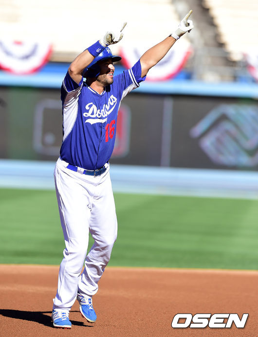 경기에 앞서 다저스 이디어가 주루 훈련을 하며 세리머니도 함께 선보이고 있다.