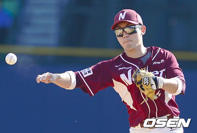 5일 오후 서울 잠실구장에서 열린 '2014 한국야쿠르트 세븐 프로야구 LG 트윈스와 넥센 히어로즈의 경기, 3회말 2사 주자 없는 상황, 넥센 서건창이 LG 오지환의 타구를 처리하고 있다.