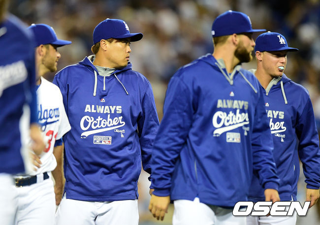 경기후 다저스 류현진이 승리 세리머니를 마치고 더그아웃으로 향하고 있다. /jpnews@osen.co.kr