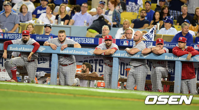 9회초 2사에서 세인트루이스 선수들이 더그아웃에서 경기를 지켜보고 있다./jpnews@osen.co.kr