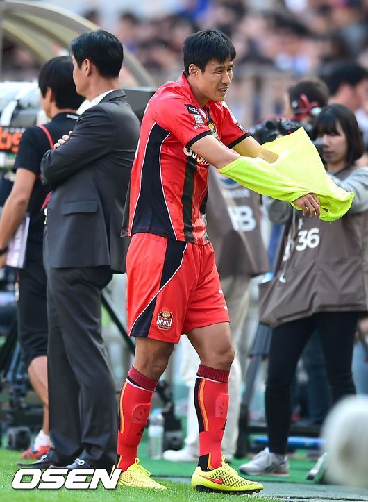 5일 서울 상암동 서울월드컵경기장에서 열린 '현대오일뱅크 K리그 클래식 2014' FC서울과 수원 삼성의 경기, 후반 FC서울 정조국이 교체준비를 하고있다