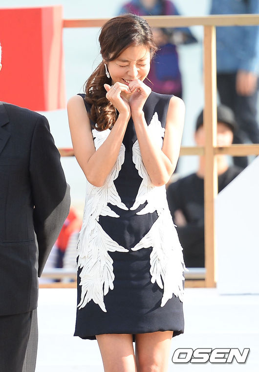 김규리가 관객들을 향해 하트를 날리고 있다.