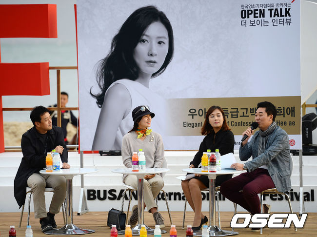 배우 김희애가 5일 오후 부산 해운대 비프빌리지 야외무대에서 열린 부산국제영화제 한국영화기자협회와 함께하는 '더 보이는 인터뷰'에 참석해 질의응답 시간을 갖고 있다.