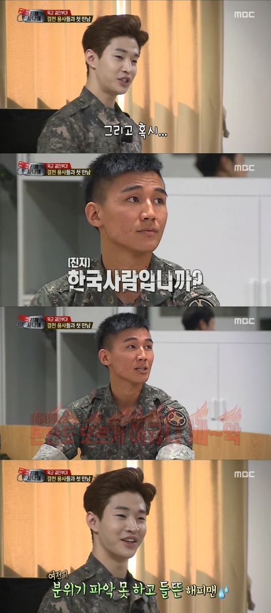 선임은 “한국 사람이다. 아까 전라도 사람이라고 말했다”라고 이를 꽉 물었다. 눈치 없이 해맑게 물어본 헨리의 질문에 다른 병사들은 웃음을 터뜨릴 수밖에 없었다.