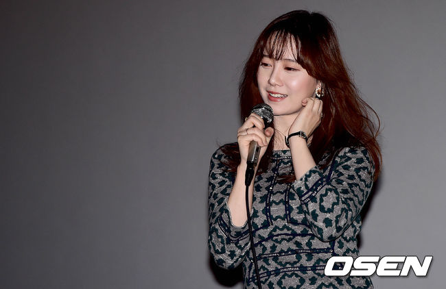 배우이자 감독인 구혜선이 사회자의 질문에 답하고 있다.