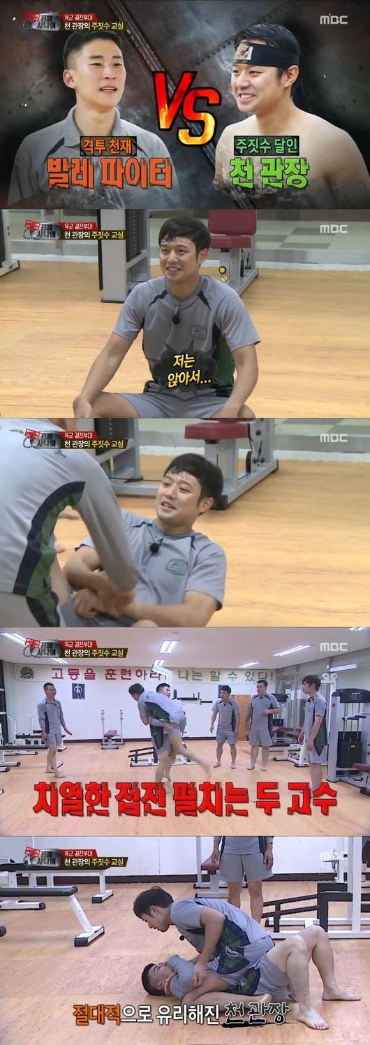 천정명은 5일 방송된 MBC 예능프로그램 ‘일밤-진짜 사나이’에서 현대무용을 해서 유연한 일반 병사와 주짓수 승부를 펼쳤다.