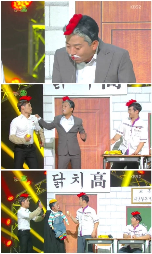 김준호는 5일 오후 방송된 KBS 2TV 예능프로그램 '개그콘서트'의 '닭치고' 코너에서 레몬을 3차례 입에 물었다.