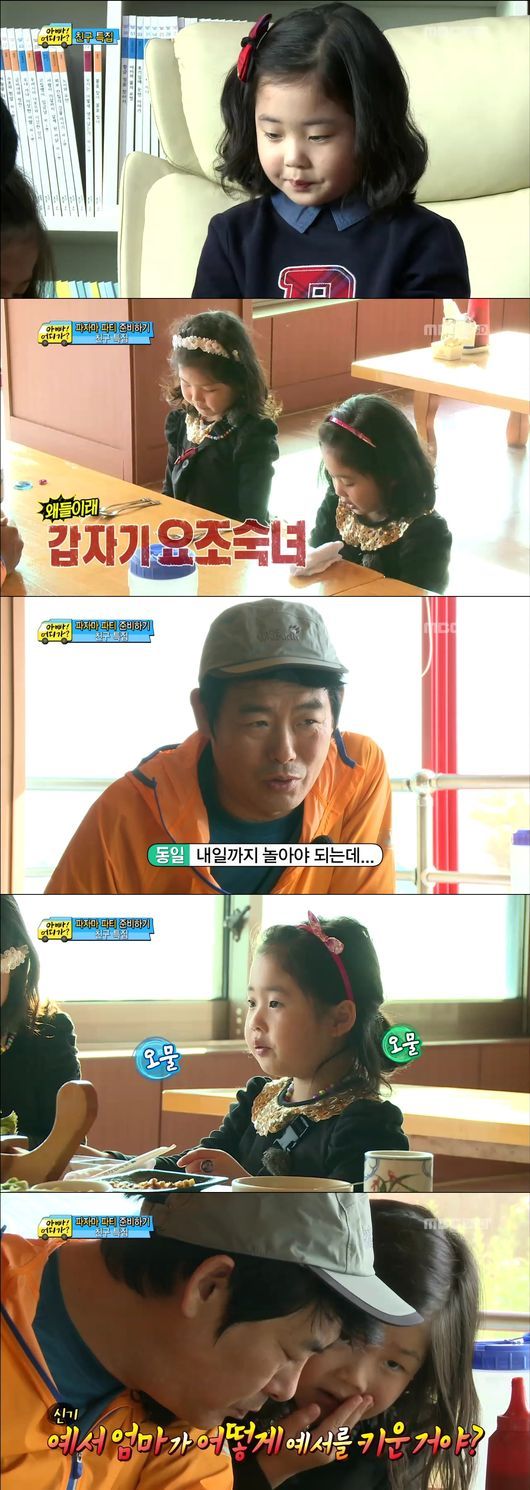 반백살 성동일의 입은 웃음을 터뜨리다 못해 한없이 벌어졌다. 눈에는 놀라움이 가득했다. 7살 성빈의 친구 홍예서가 회를 마늘까지 넣어서 먹는 것을 보며 벌어진 일이었다. 초반 한없이 얌전했던 이 아이는 시간이 지날수록 엉뚱하고 귀여운 말투로 성동일과 성빈을 당황하게 하는 말을 했고, 덕분에 안방극장은 놀라움에 ‘어머 어머’를 연발하며 웃음을 지었다.