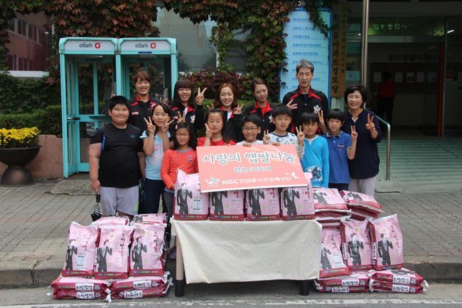 KGC인삼공사 배구단(단장 조성인)이 연고지역 자매결연 사회복지단체를 대상으로 ‘사랑의 쌀’ 전달 행사를 가졌다.