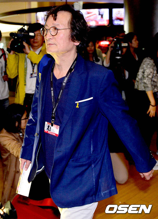 노란 리본달고 '다이빙벨' GV 참석하는 정지영 감독