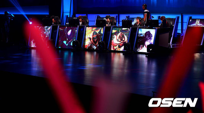 나진 실드 선수들이 1세트 경기를 시작하고 있다.