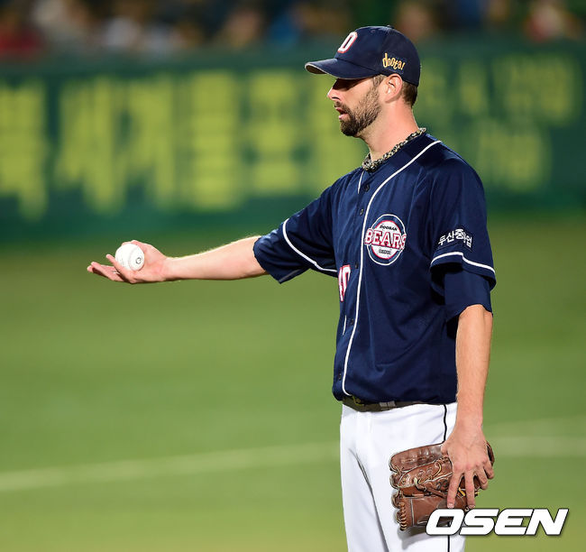6일 오후 대구 시민구장에서 '2014 한국야쿠르트 세븐 프로야구' 삼성 라이온즈와 두산 베어스의 경기가 열렸다. 1회말 공수교대 때 두산 니퍼트가 구심을 향해 발판을 요청하고 있다. 삼성의 선발 투수는 J.D. 마틴. 올 시즌 21차례 마운드에 올라 8승 6패를 거뒀다. 평균 자책점은 5.11. 최근 투구 내용은 그다지 좋은 편은 아니다. 지난달 두 차례 선발 등판을 통해 승패없이 평균 자책점 5.00을 거뒀다. 삼성은 두산 선발 더스틴 니퍼트만 만나면 고개를 떨궜다. 올 시즌 니퍼트에게 5패를 당했다. 두산은 4연패 수렁에 빠져 있다. 꺼져가는 4강 불씨를 되살려야 한다. 4연패 기간 중 경기당 평균 득점은 2.5에 불과했다. 타자들이 더욱 분발해야 할 상황이다. / youngrae@osen.co.kr