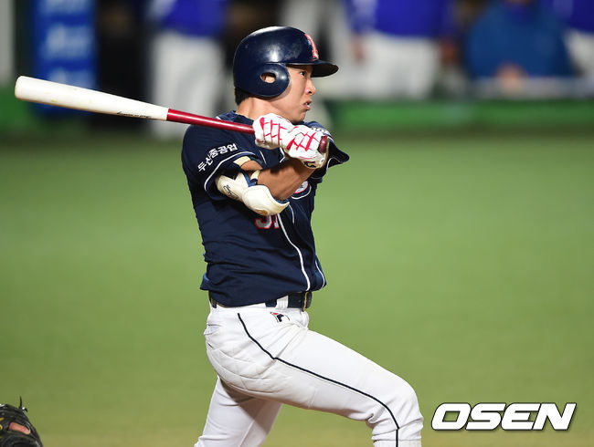 적시타 때리는 정수빈,'오늘 경기는 내가 끝내겠어'
