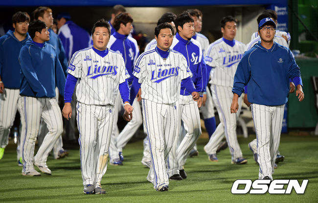 두산 베어스가 삼성 라이온즈를 꺾고 4연패 사슬을 끊었다. 두산은 6일 대구구장에서 열린 삼성과의 경기에서 연장 11회 정수빈의 결승타에 힘입어 5-1로 승리했다. 지난 2일 광주 KIA전 이후 4연패 탈출. 1번 정수빈은 결승타를 포함해 6타수 3안타 3타점으로 최고의 활약을 펼쳤다. 반면 삼성은 연장 혈투 끝에 쓰라린 패배를 당하며 연승 행진을 '4'에서 마쳤다. 경기에서 패한 삼성 선수들이 아쉬워하고 있다. / youngrae@osen.co.kr