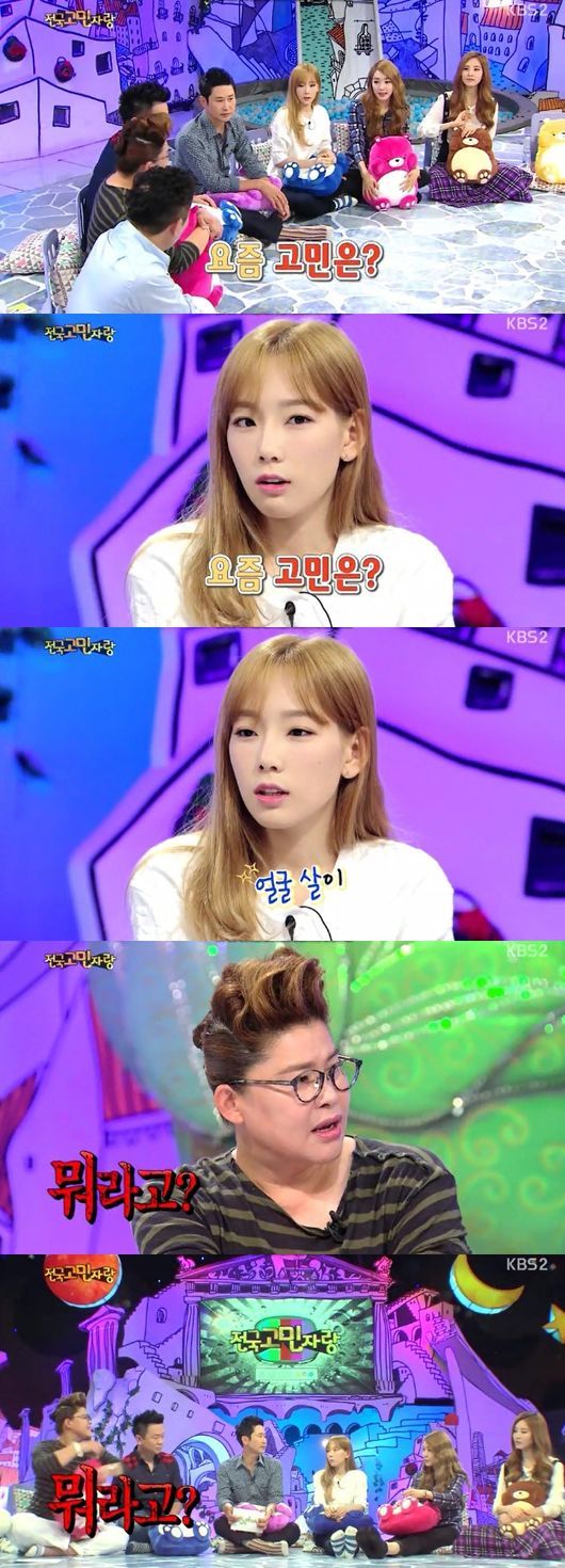 이영자를 비롯한 MC들은 6일 오후 방송된 KBS 2TV '대국민 토크쇼 안녕하세요'에서 태티서에게 최근 고민이 무엇인지 질문했다.