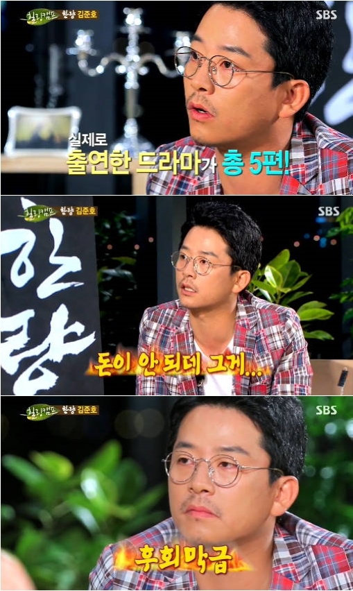 이날 김준호는 "'달콤한 스파이' '에어시티' '뉴하트' 등 5편의 드라마에 출연했다"며 "하지만 개그프로그램과 병행하다 보니 이도 저도 안되더라. 시간 분배를 못하니까 제 역할을 점점 줄어들었다"고 말했다. 그는 "시간 대비 돈이 안 되더라. 후회막급이다. 당시 저를 '개탤맨'(개그맨+탤런트)라고 불렀는데, 실은 '개털'이었다"고 말해 웃음을 자아냈다.
