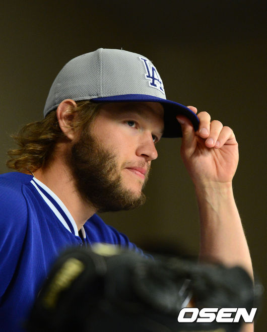 경기에 앞서 다저스 4차전 선발로 결정된 커쇼가 인터뷰를 하고 있다.