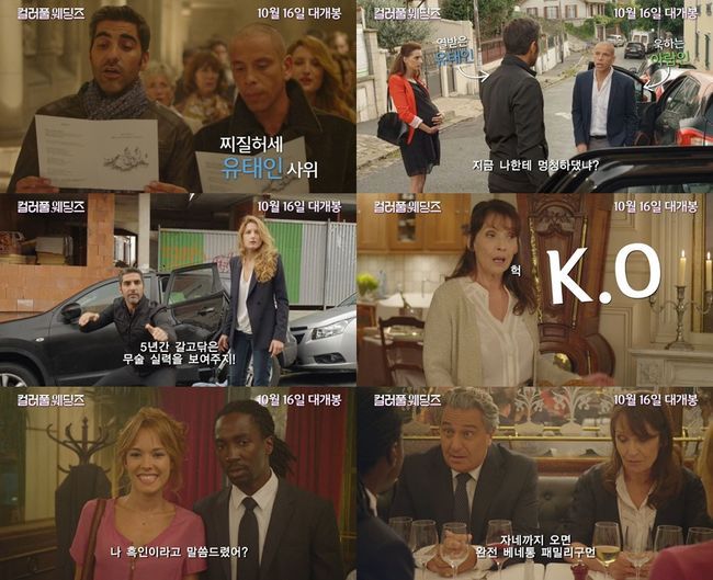 프랑스 상위 1%의 딸 부잣집 클로드 부부의 딸 셋이 각각 아랍인, 유태인, 중국인과 결혼한 데 이어 막내 딸까지 아프라카인 예비 사위를 데려오면서 벌어지는 이야기를 다룬 '컬러풀 웨딩즈'가 영화의 웃음 포인트를 모은 코믹 하이라이트 영상을 최초 공개한 것.