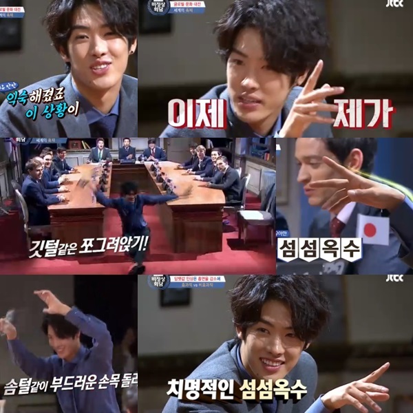 남은 대표는 일본의 타쿠야. 이때 타쿠야의 섬섬옥수가 나타났다. 매회 치열한 토론이 이어져 패널들의 앞 다투어 손을 들어 자신의 의견을 쏟아내는 가운데 어디선가 가늘고 긴 아름다운 손이 나타난다. 바로 타쿠야의 손이다. 패널들 중 가장 큰 키를 소유한 타쿠야는 유난히 길고 가는 손을 가지고 있어 손을 들 때 돋보인다. 이에 ‘섬섬옥수’라는 애칭이 붙여졌다.