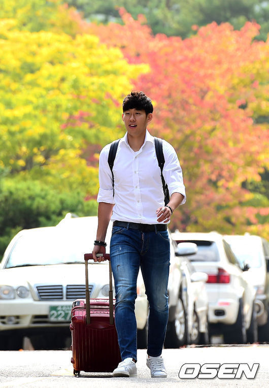축구대표팀 손흥민이 7일 오전 파주 NFC(국가대표 트레이닝센터)에 들어서고 있다.