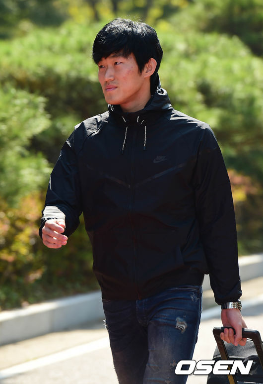 축구대표팀 장현수가 7일 오전 파주 NFC(국가대표 트레이닝센터)에 들어서고 있다.