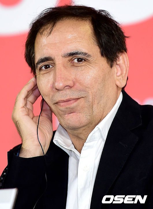 모흐센 마흐발바프 감독이 취재진의 질문을 듣고 있다.