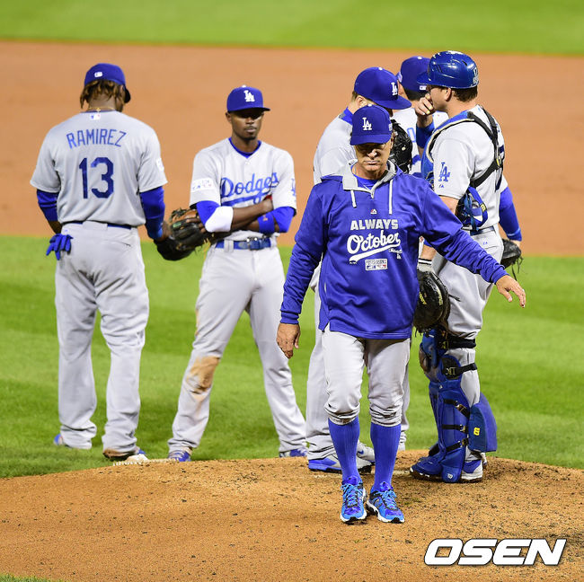 8회말 다저스 매팅리 감독이 윌슨에서 하웰로 투수를 교체하고 더그아웃으로 향하고 있다./jpnews@osen.co.kr