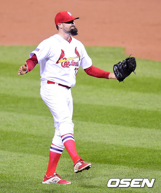 8회초 세인트루이스 네섹이 삼자범퇴로 수비를 마치고 기뻐하고 있다./jpnews@osen.co.kr