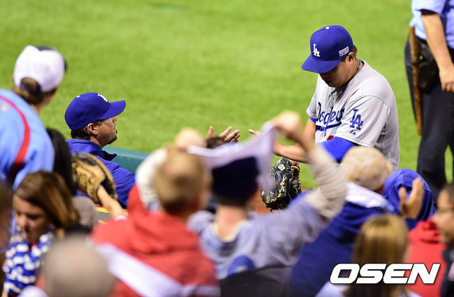 6회말 수비를 마친 다저스 류현진이 더그아웃으로 향하고 있다./jpnews@osen.co.kr