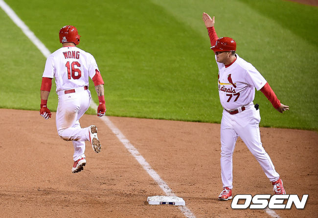 7회말 1사 3루에서 세인트루이스 웡이 투런포를 날리고 기뻐하고 있다./jpnews@osen.co.kr