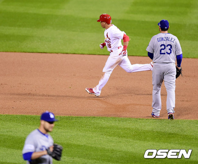 7회말 1사 3루에서 세인트루이스 웡이 다저스 엘버트를 상대로 투런포를 날리고 기뻐하고 있다./jpnews@osen.co.kr