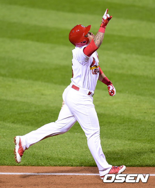 7회말 1사 3루에서 세인트루이스 웡이 투런포를 날리고 기뻐하고 있다./jpnews@osen.co.kr
