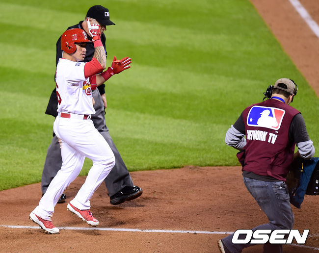 7회말 1사 3루에서 세인트루이스 웡이 투런포를 날리고 기뻐하고 있다./jpnews@osen.co.kr