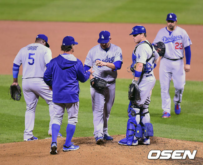 7회말 2사 2루에서 다저스 엘버트가 강판당하고 있다./jpnews@osen.co.kr