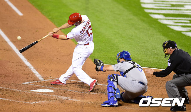 3회말 무사에서 세인트루이스 카펜터가 다저스 류현진을 상대로 선제 솔로포를 날리고 있다./jpnews@osen.co.kr