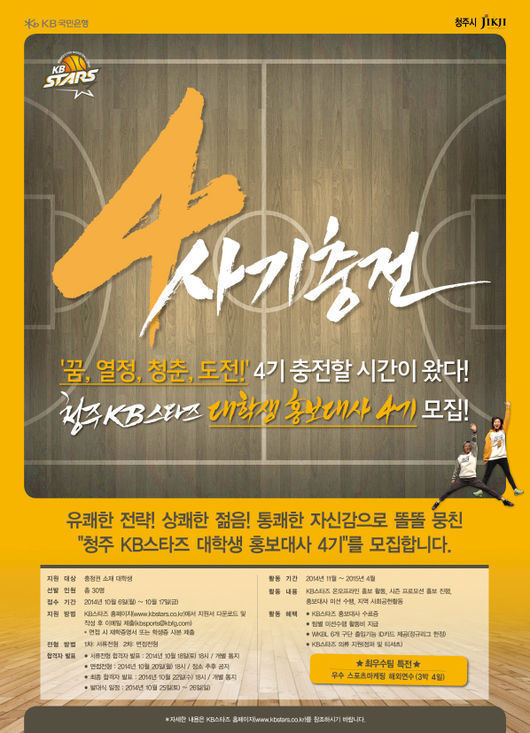 청주 KB스타즈 여자프로농구단이 2014-2015시즌 여자프로농구 개막을 앞두고 대학생 홍보대사를 모집한다.