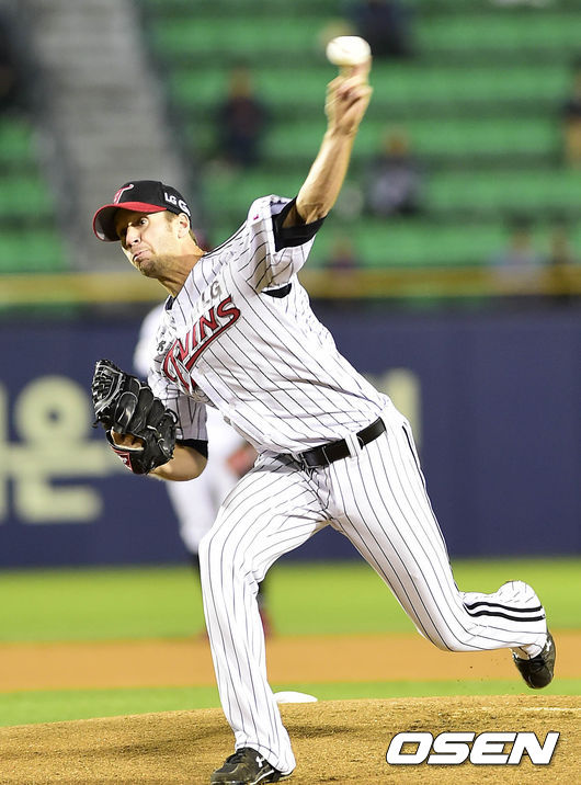 7일 오후 서울 잠실구장에서 열린 '2014 한국야쿠르트 세븐 프로야구 LG 트윈스와 삼성 라이온즈의 경기, 1회초 LG 선발투수 티포드가 힘차게 공을 던지고 있다.