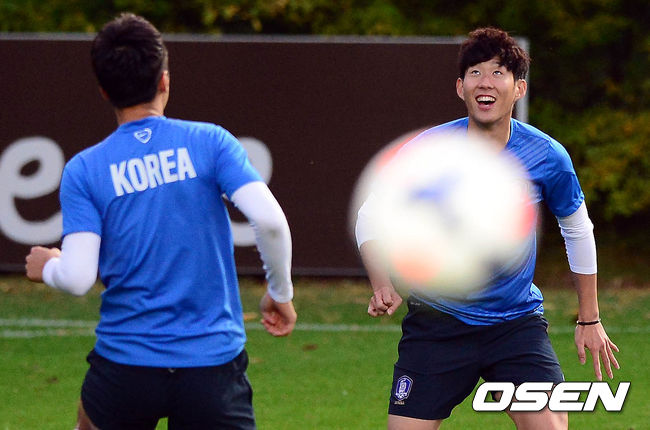 축구대표팀 손흥민이 7일 오후 파주 NFC(국가대표 트레이닝센터)에서 훈련을 하고 있다.
