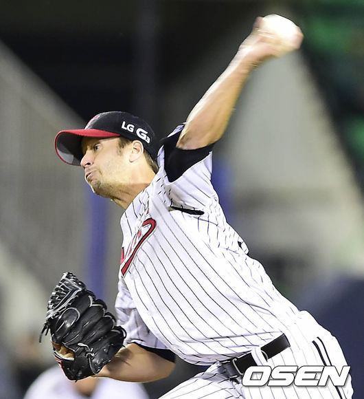 7일 오후 서울 잠실구장에서 열린 '2014 한국야쿠르트 세븐 프로야구 LG 트윈스와 삼성 라이온즈의 경기, 1회초 LG 선발 투수 티포드가 힘차게 공을 던지고 있다.