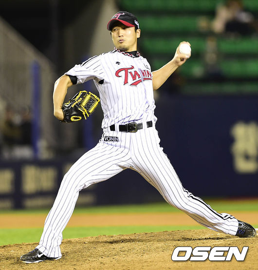 7일 오후 서울 잠실구장에서 열린 '2014 한국야쿠르트 세븐 프로야구 LG 트윈스와 삼성 라이온즈의 경기, 7회초 LG 유원상의 뒤를 이어 마운드에 오른 신재웅이 힘차게 공을 던지고 있다.