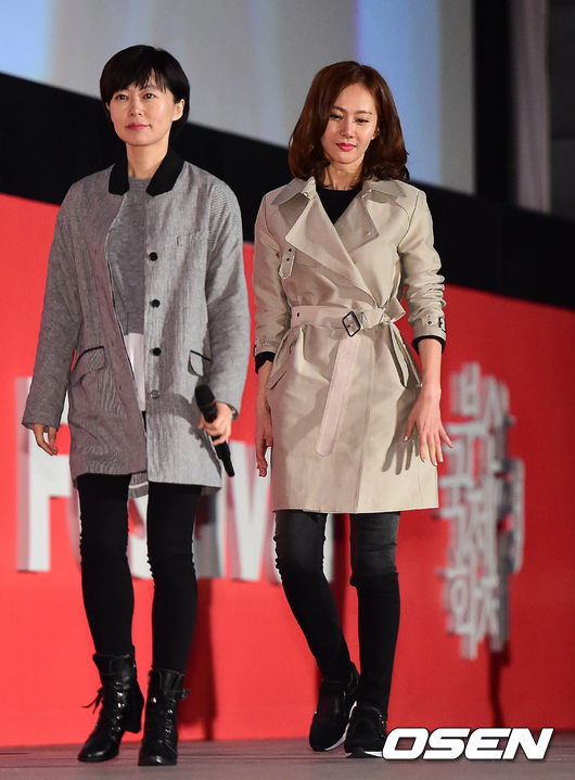 야외 상영 전 무대 인사에 부지영 감독과 배우 염정아가 참석하고 있다.
