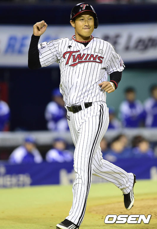 7일 오후 서울 잠실구장에서 열린 '2014 한국야쿠르트 세븐 프로야구 LG 트윈스와 삼성 라이온즈의 경기, 8회말 1사 주자 만루, LG 임재철의 오지환의 희생플라이에 홈을 밟고 있다.