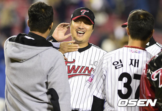 경기종료후 LG 이진영과 선수들이 기쁨을 나누고 있다./greenfield@osen.co.kr