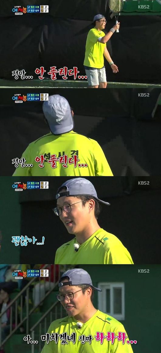 가수 성시경이 잘 풀리지 않는 테니스 게임에 '멘붕'을 겪었다.