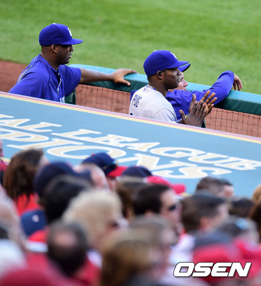 8일(이하 한국시간) 미국 미주리주 세인트루이스에 위치한 부시스타디움에서 열린 2014 메이저리그 LA 다저스와 세인트루이스 카디널스의 디비전시리즈(NLDS·5전3승제) 4차전, 2회초 선발에서 제외된 다저스 푸이그가 더그아웃에서 경기를 지켜보고 있다.